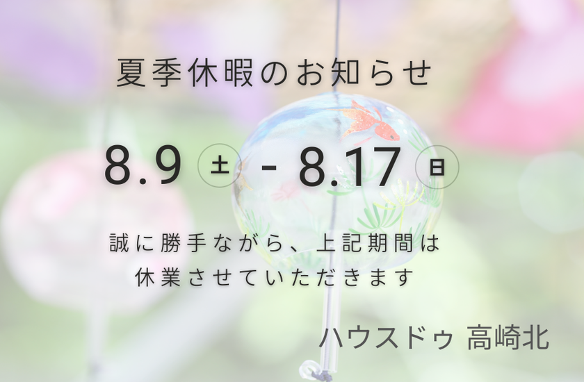誠に勝手ながら、夏季休暇をいただきます。