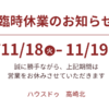 誠に勝手ながら、下記日程を 臨時休業 とさせていただきます。 📅 休業日:11月18日(火)~11月19日(水) ...