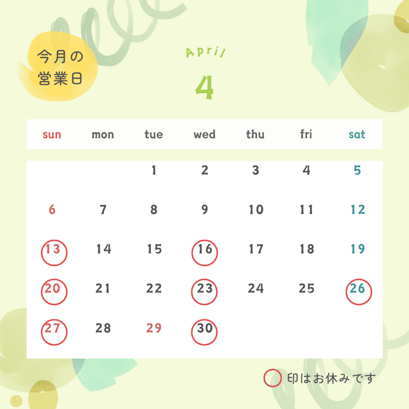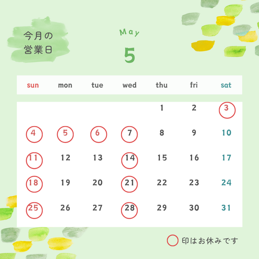 4月・5月の休業日をお知らせいたします。